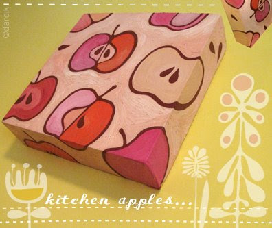 A new painting to show you. Apples. Like a pattern on a canvas. I think it will make some kitchen very happy one day:)Let me know if you think it's your kitchen. I was going to set up an Etsy store and sell most of my painting... but I haven't had the time or the chance.